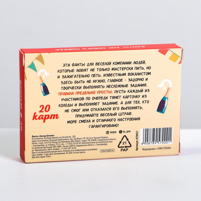 Купить игра для компании "фанты звезда бокала" 20 карт от 120 руб. с доставкой до пункта выдачи в Таштаголе. Интернет магазин ДекаМаркет. Оплата при получении.